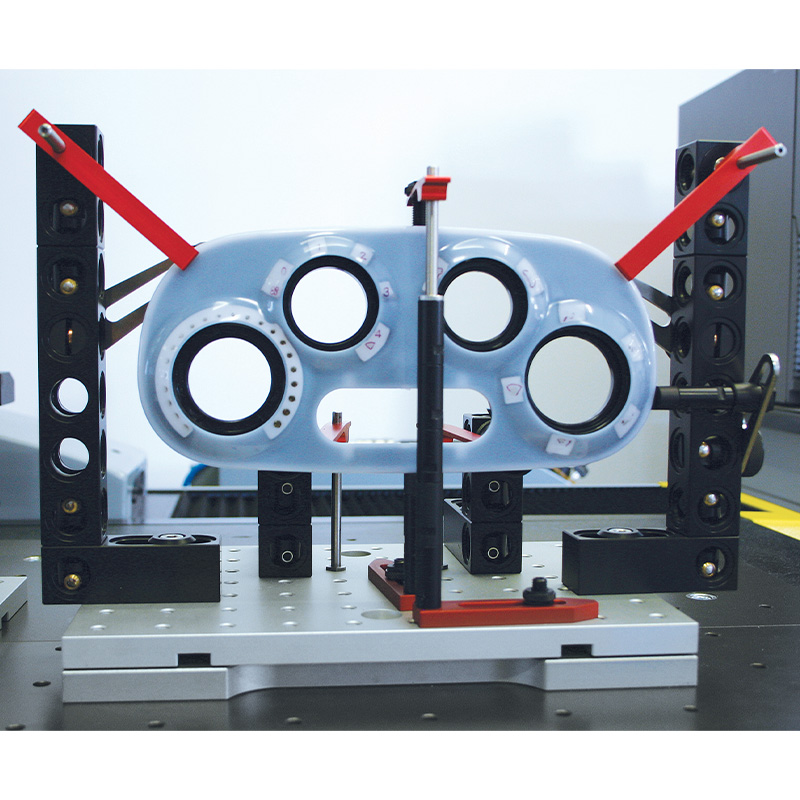 Fast set up of fixtures for small, machined, molded parts; plastic or sheet metal parts.
