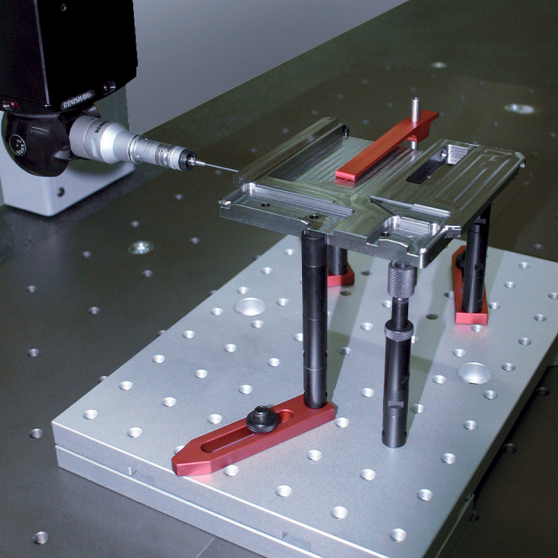 Fast set up of fixtures for small, machined, molded parts; plastic or sheet metal parts.